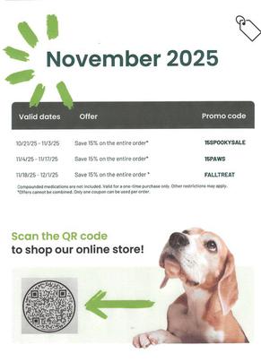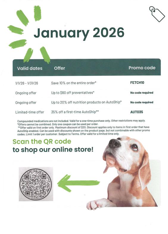 Why pay Chewy when you can order through Vetsource! Most prescription diets and some medications can be price matched through our online pharmacy which helps you support local!